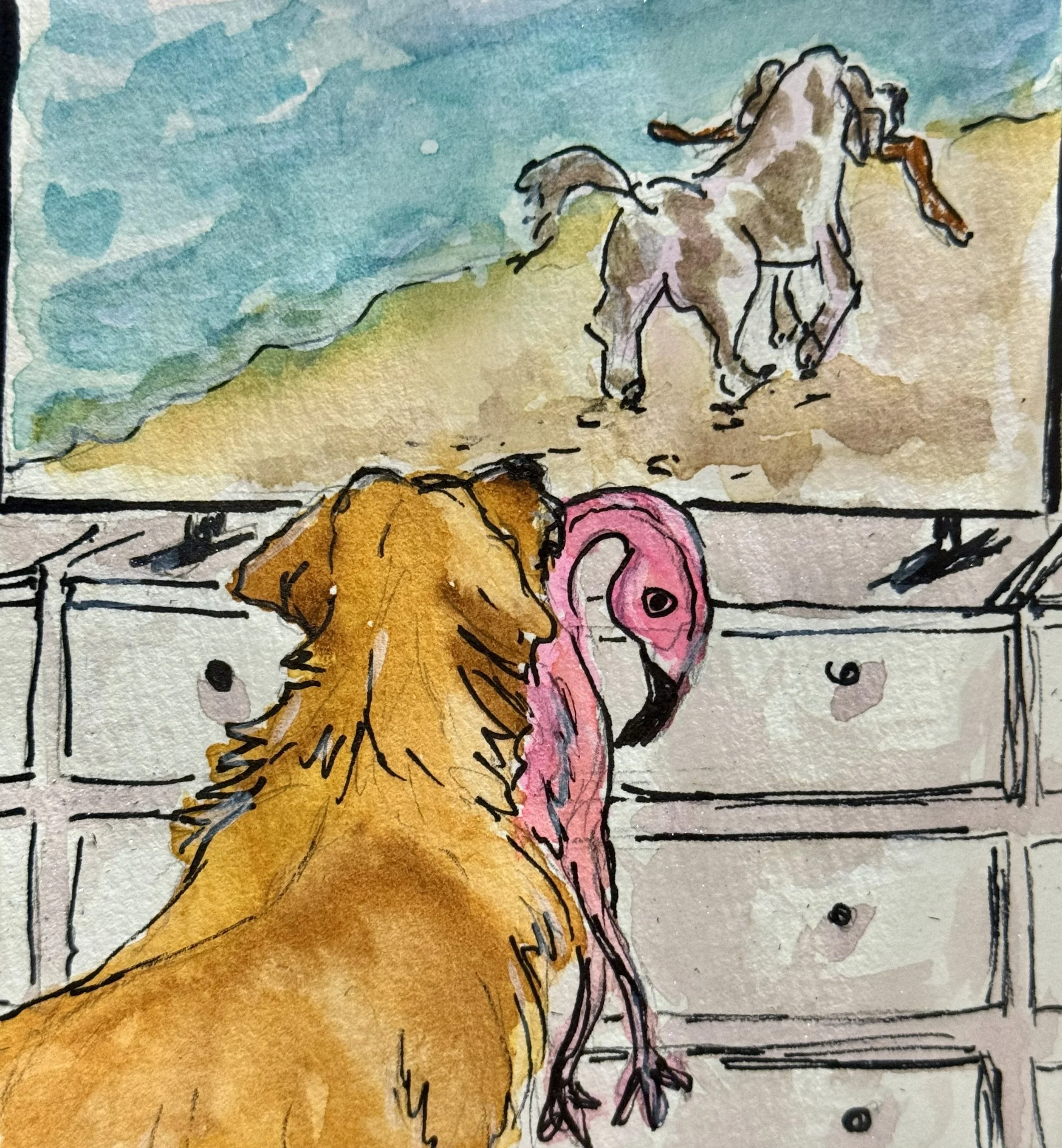 Marshall loves Puppy TV. I put the dog channel on Youtube and leave the TV on for him when I go out to keep him entertained. One day, he was watching footage of a dog playing with a stick on the beach. Marshall cares not for sticks, but this dog intrigued him and he went to get Mingo to show the tv dog. He stood watching the tv dog trot away with his stick, with a very sad look on his face. How could anyone not want to meet Mingo???